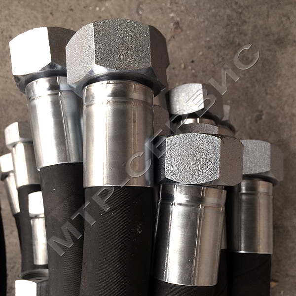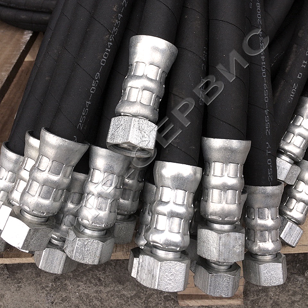 Готовый гидравлический шланг состоит из резинового шланга высокого давления, двух обжимных муфт и фитингов, конструкция которых обеспечивает герметичность рабочей жидкости.